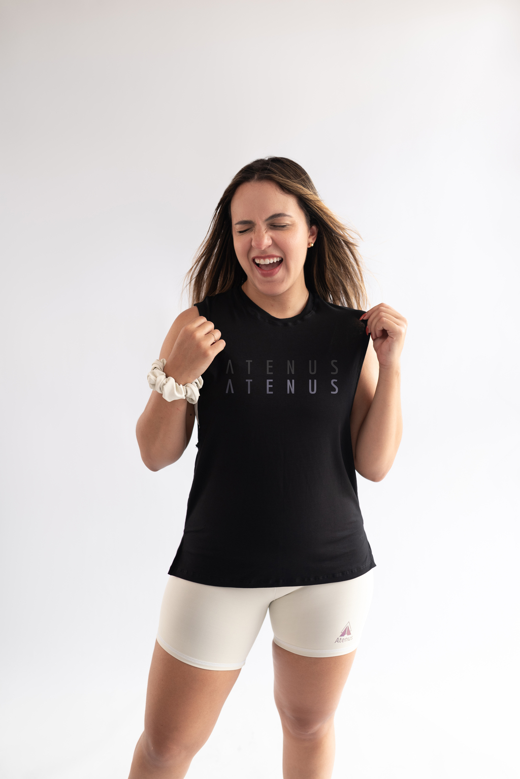 Com uma modelagem única, o regatão se adapta perfeitamente ao corpo, destacando sua silhueta de forma delicada e moderna.